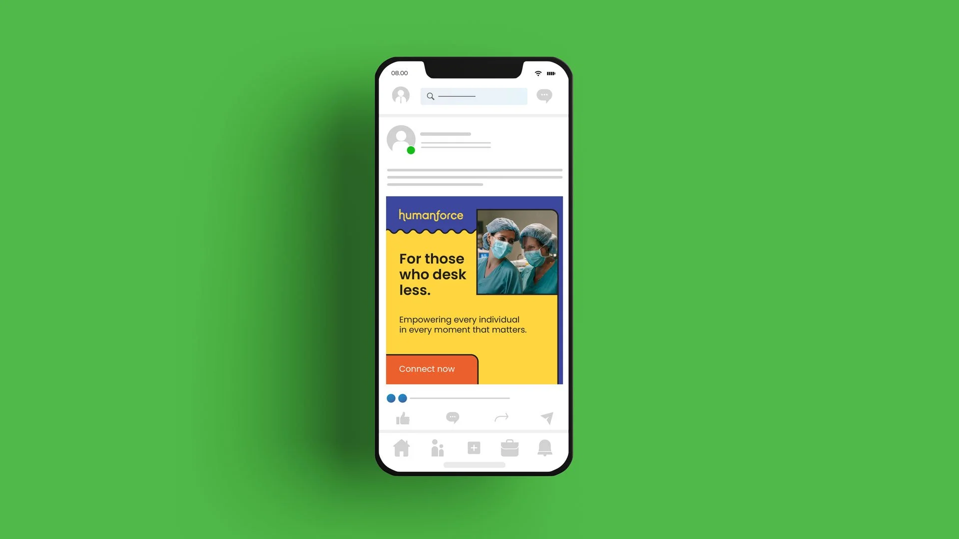 The Humanforce brandmark itself is a visual representation of their purpose; connecting people (human) and technology (force). We also created a rigorous visual device (three lines of connection), which represents human connection and networking – connecting with humans around you, and networking to make work easier and life better.