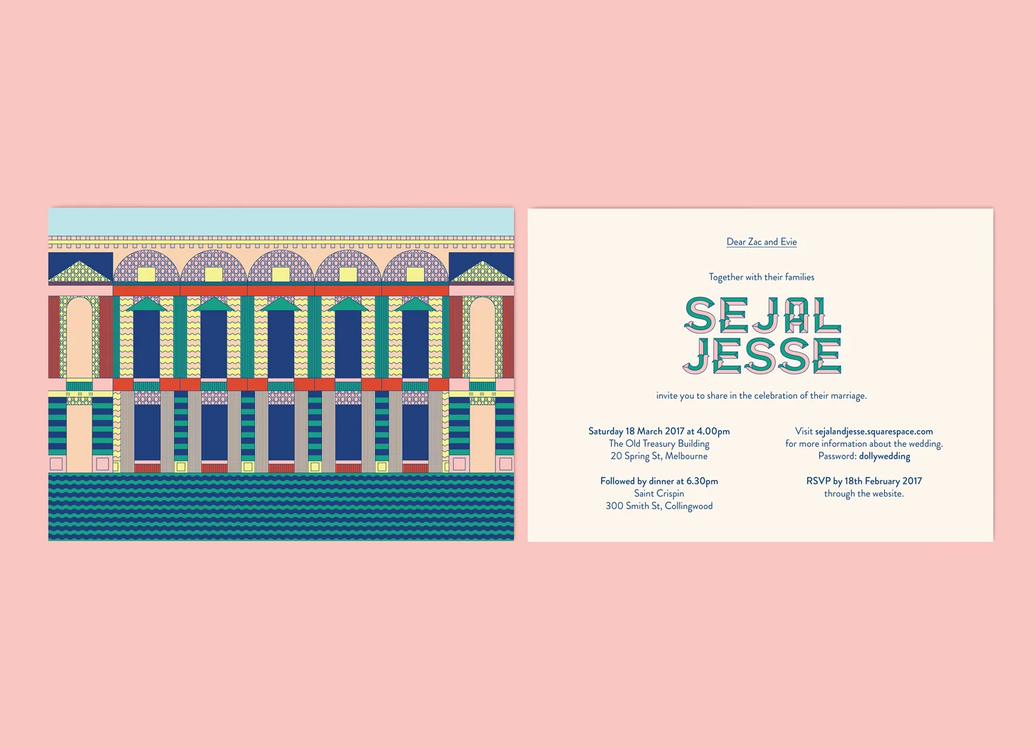 Sejal and Jesse approached me to design their wedding stationary. Their wedding was held at The Old Treasury Building, Melbourne.