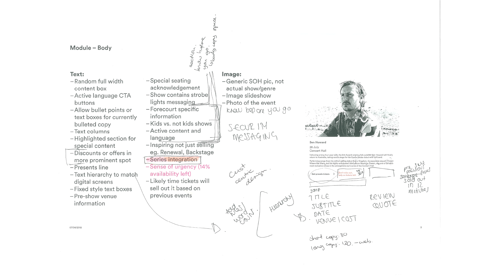 I created a visual and verbal competitor analysis across competitor emails; as well as conducting a visual analysis of the newly created Sydney Opera House What’s On webpage, as this was seen as the benchmark for design.
